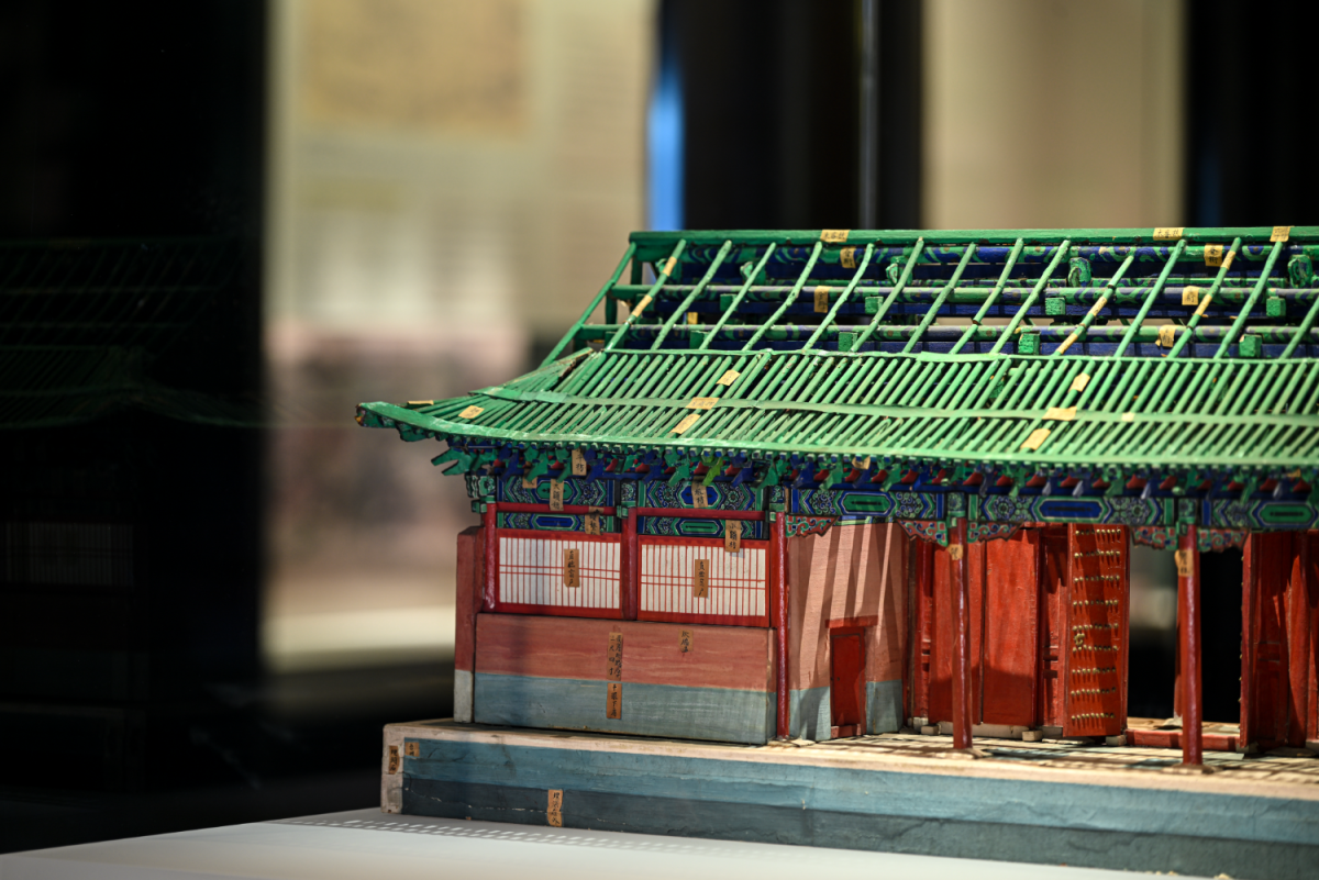 恭王府博物馆高级工程师王倩介绍,现存烫样实物,大多是清代同治、光绪时期为进呈御览所作,遍施彩色。这相当于现代施工图,以尺寸精准为首要。展出的地安门烫样就是五寸样,换算成现代比例尺为1:20。